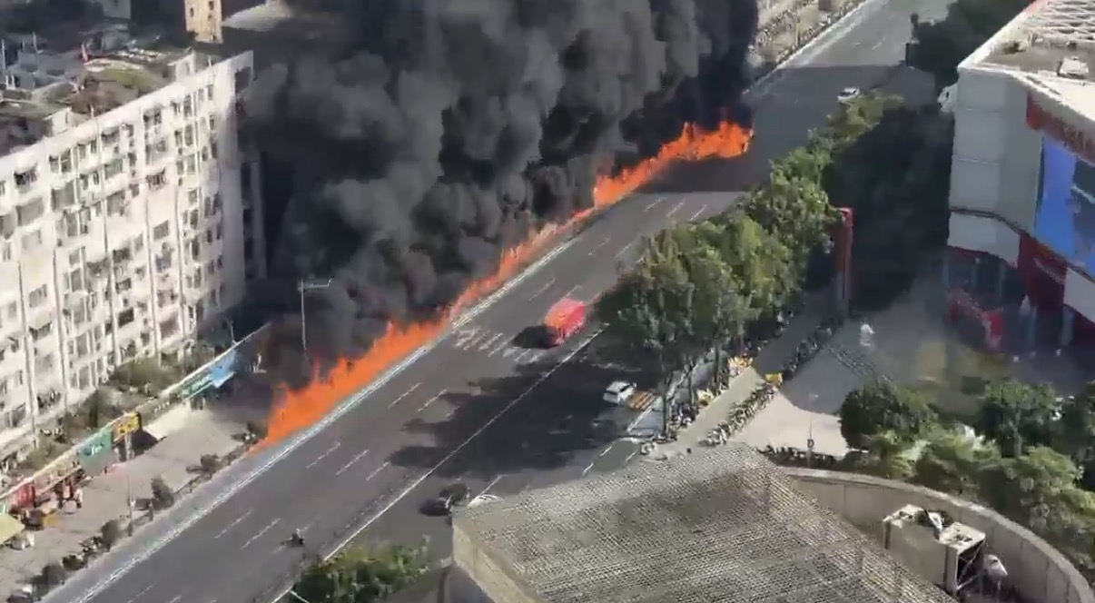 12月1日午后,广东广州海珠区沙园地铁站附近一辆货车起火。随后火势蔓延到周边道路上,现场浓烟滚滚。据广州消防消息,当日13时54分明火被扑灭,无人员伤亡、被困。