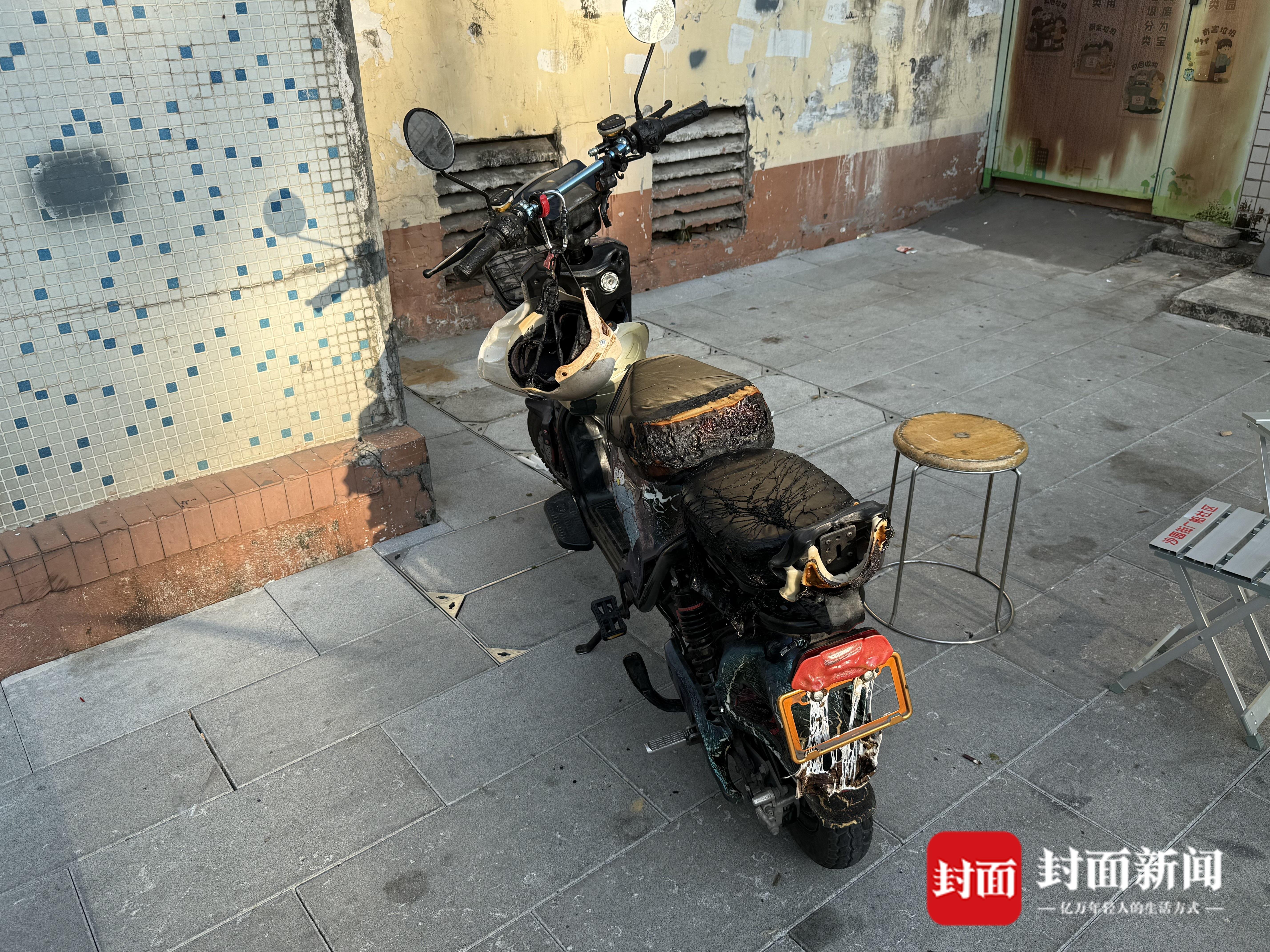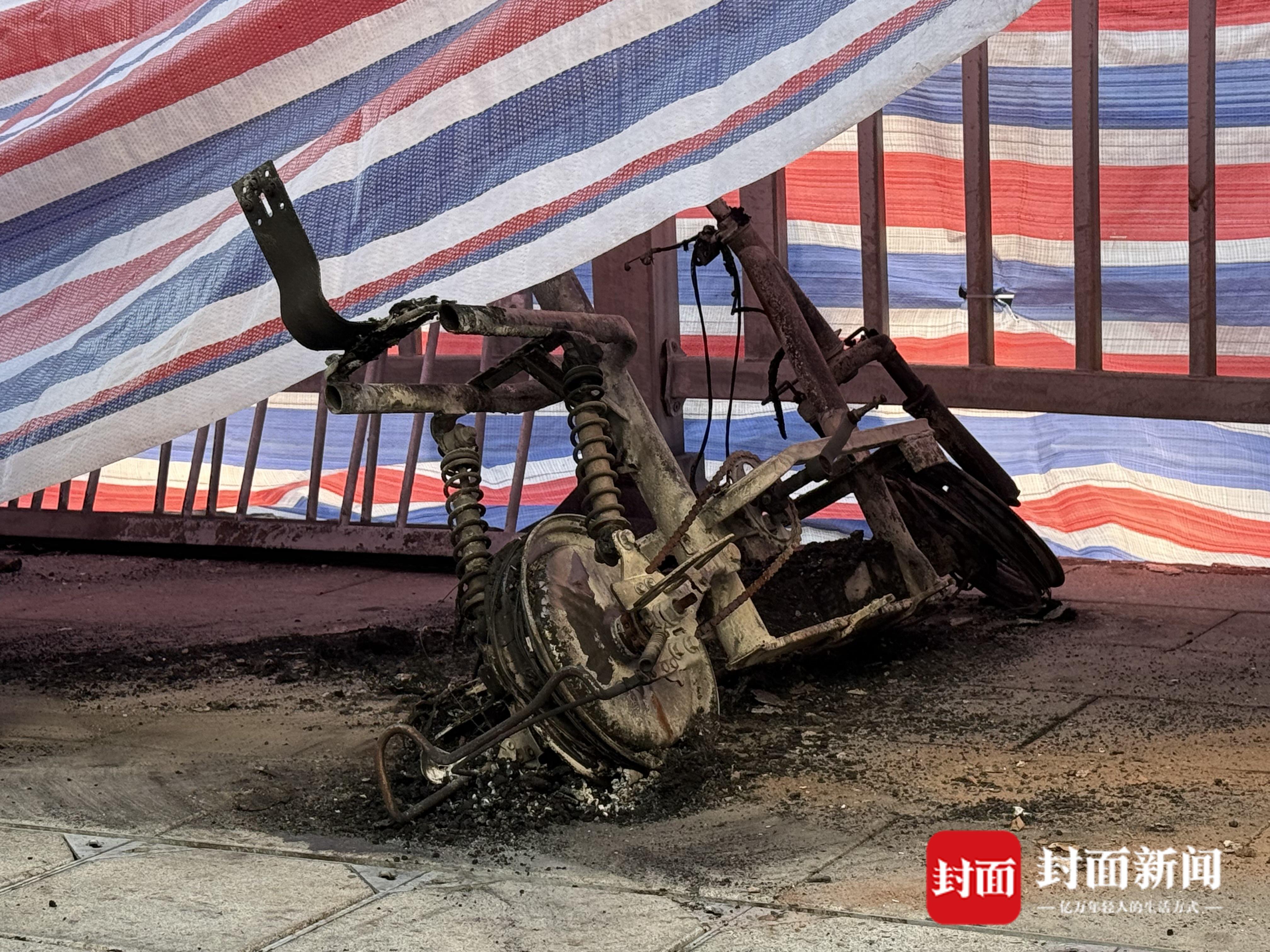 12月1日事故现场被烧的电动车。摄影:杨峰