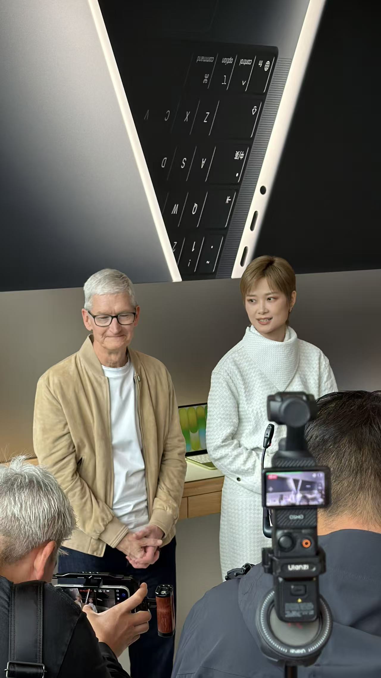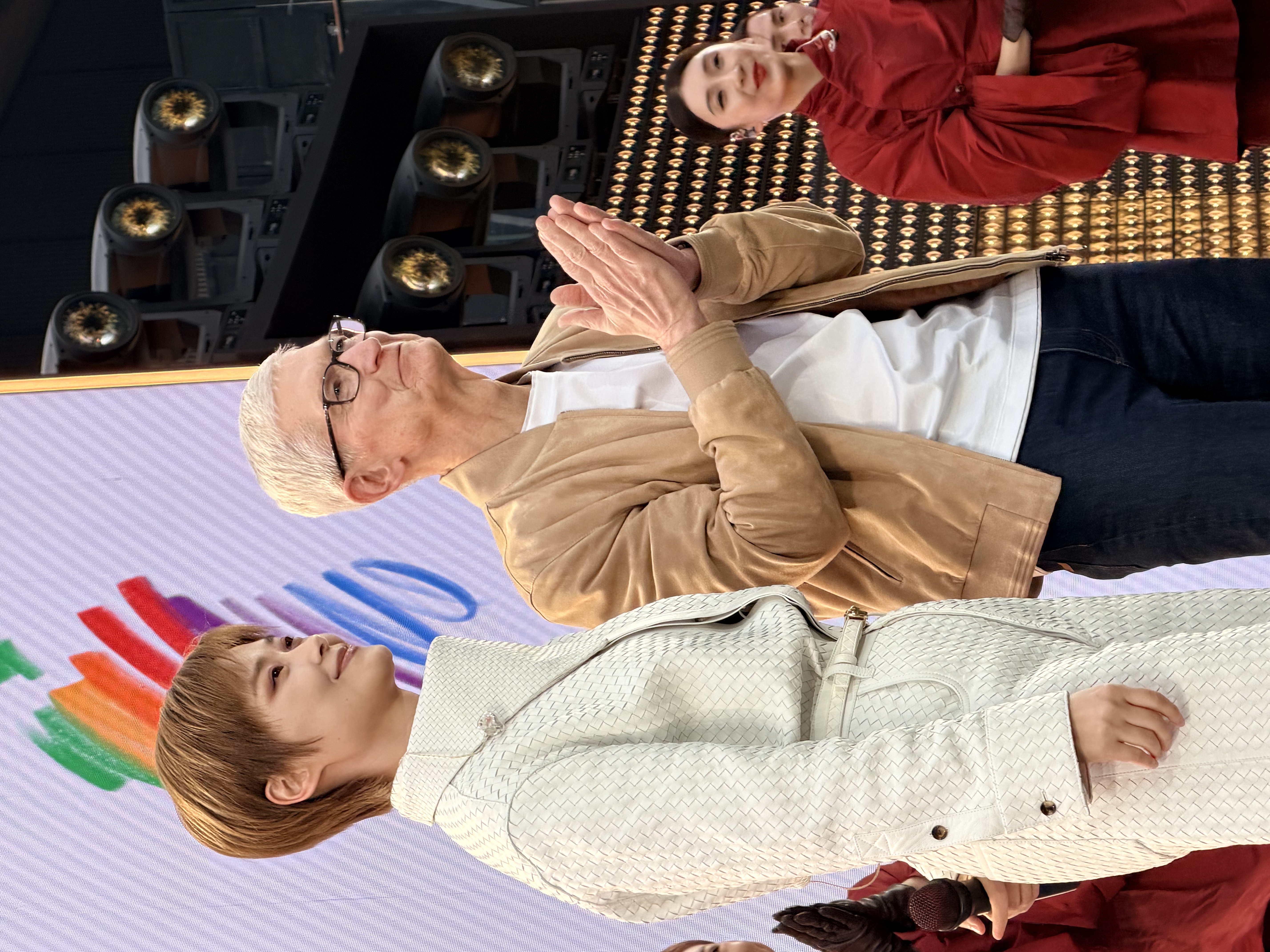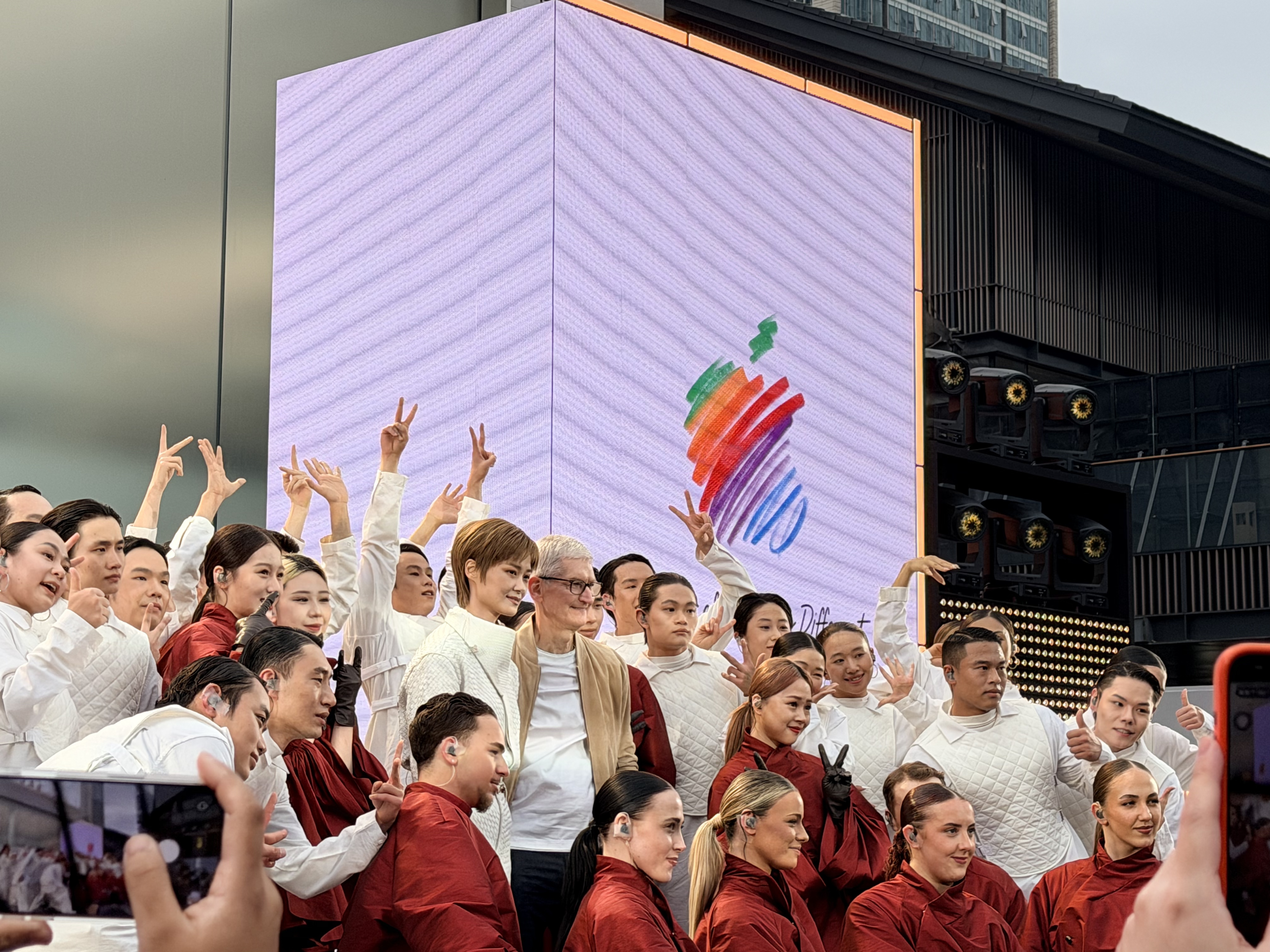当天,苹果公司CEO库克现身活动现场,他和现场果粉亲切问候、互动。著名歌星李宇春在活动现场唱跳齐上献上了数首代表曲目,直接带燃整个现场。