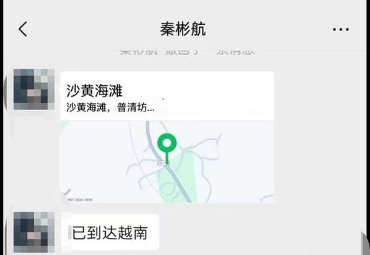 同时,小秦的同学向秦先生提供了两人的微信聊天记录。其中显示,11月14日,秦彬航曾发送越南广义省“沙黄海滩”的定位给同学,并告知“已到达越南”。